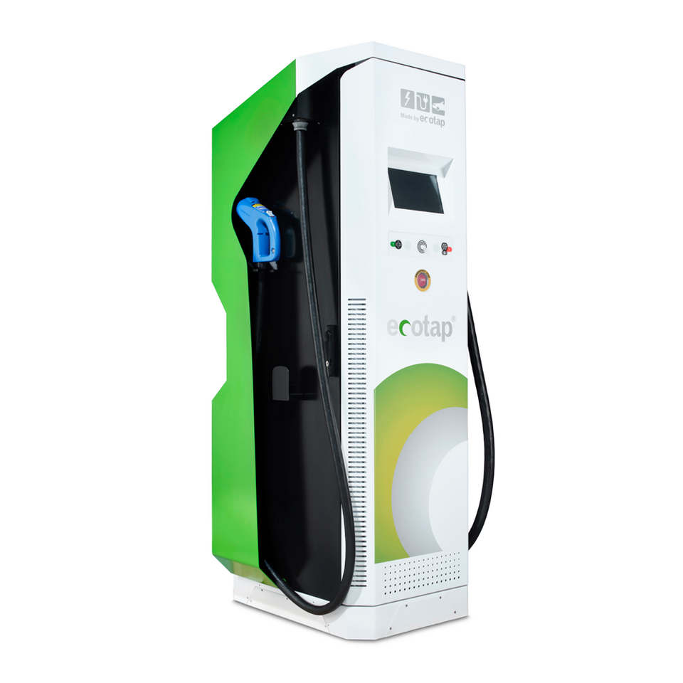Das Ecotap® DC 30 Schnellladegerät kann für alle Elektrofahrzeuge mit CHAdeMO- oder CCS-Anschluss verwendet werden. Das Ladegerät hat eine Gleichstromleistung von bis zu 30 kW. Die tatsächliche Ladekapazität hängt von der verfügbaren Leistung ab.